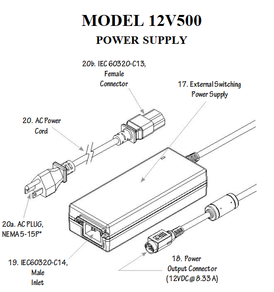 17. POWER SUPPLY - The included UL listed desktop switching power