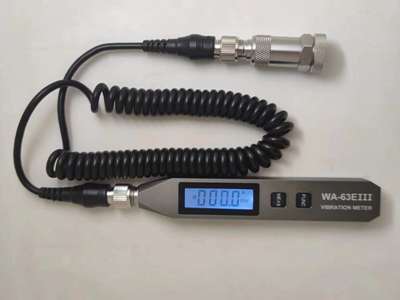 WA-63EII is a precise rechargeable pen type vibration measuring instrument. The product has features as following,convenient to carry,fine appearance, easy to operate and small and light.The fuselage is made of high strength aluminum alloy CNC, with anti shock .The product mainly used for the equipment such as motor, fan, pump, compressor and rapid maintenance of machine tools and other mechanical equipment . Preventive inspection of mechanical equipment failure;It is especially suitable for inspectors.The vibration measurements are shown directly by three and a half liquid crystals.The esurement should be kept in close contact with the surface of the object, and the pressure is about 5-20n.The instrument can measure acceleration, speed and displacement.